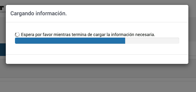Al abrir tu declaracion anual, veras un cuadro de "Cargando informacion" con una barra de progreso. El boton de SATisfecho aparece mientras el SAT carga tus datos.